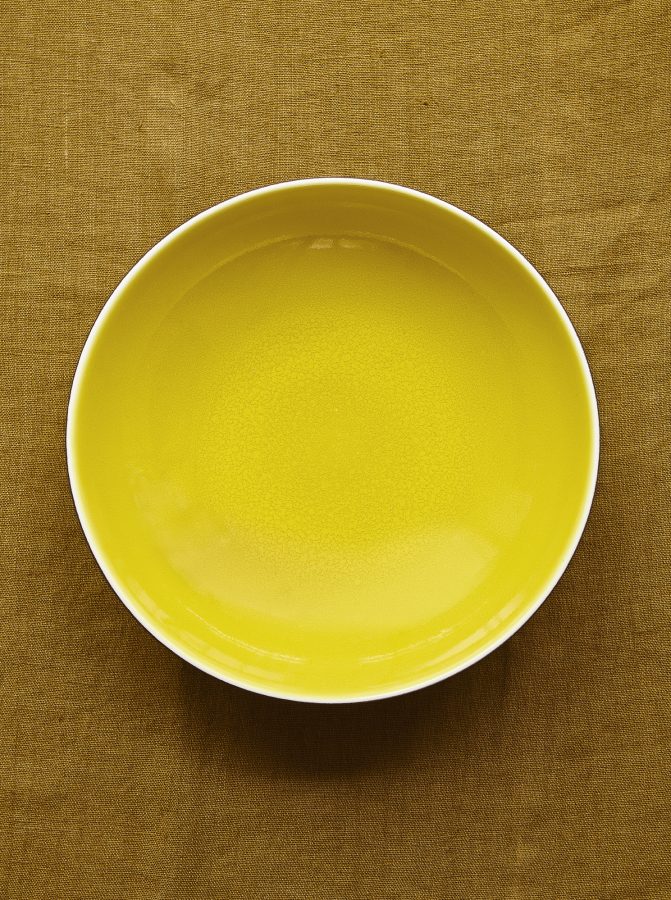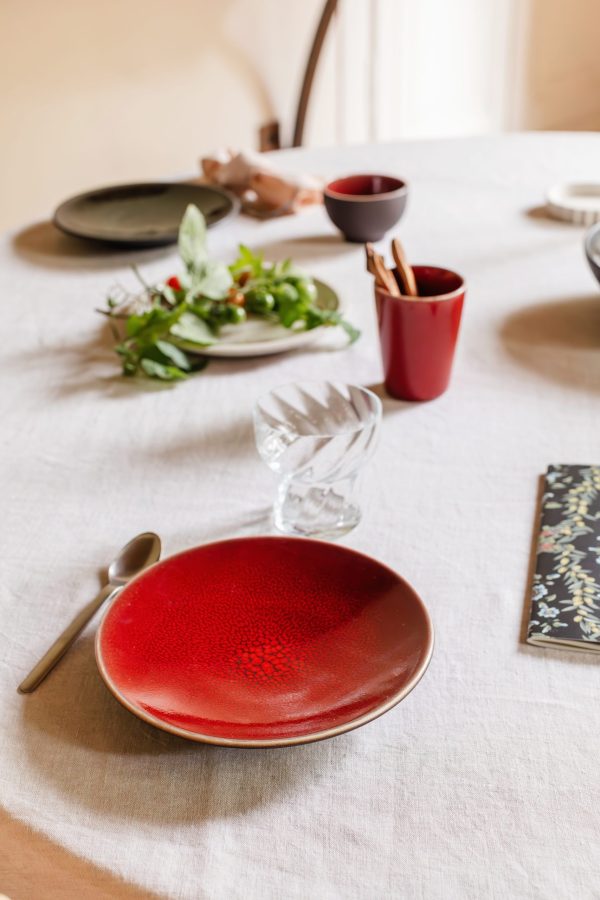 Cette pièce allie simplicité des formes et richesse des couleurs, signature emblématique de la collection Tourron. Son émail, appliqué à la main, révèle des nuances subtiles qui rendent chaque assiette unique.