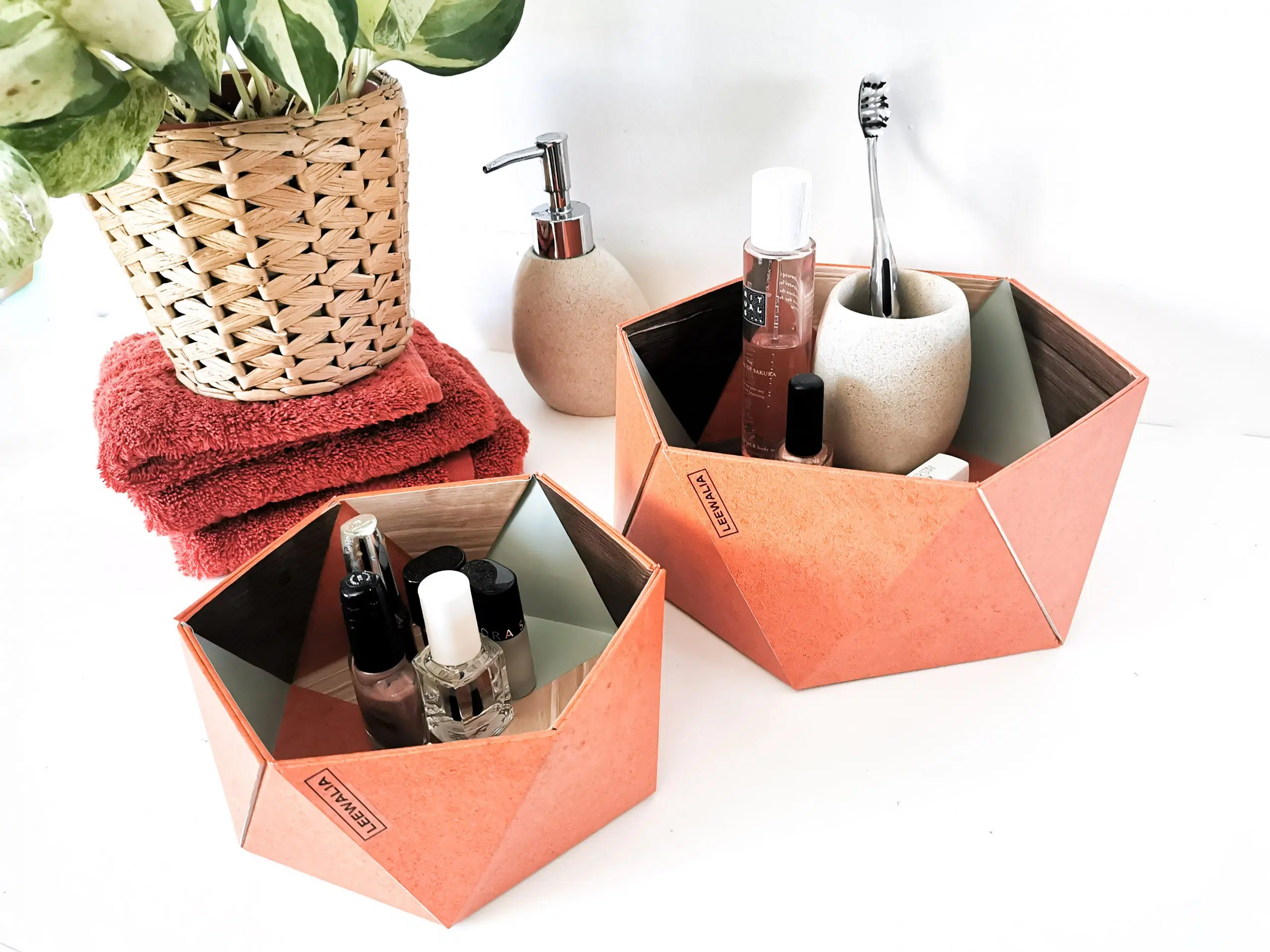 Ces paniers de rangement en carton bois combinent praticité et esthétisme pour une organisation optimisée de votre intérieur. Chaque pièce est confectionnée à la main avec une découpe précise et un assemblage soigné, garantissant une finition robuste et élégante. Leur design épuré et leur structure légère en font des accessoires polyvalents, parfaits pour ranger des textiles, des accessoires ou des objets du quotidien. Grâce à leur conception artisanale, ils conservent une grande solidité tout en restant faciles à manipuler et à déplacer. Leur matériau écoresponsable assure une alternative durable aux rangements classiques, tout en ajoutant une touche naturelle et chaleureuse à votre espace de vie.