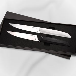 Pensé dans les ateliers de Lepage Knives dans l’Ain, puis fabriqué à Thiers, ce coffret incarne l’excellence artisanale française. Sa double déclinaison de couleurs – noir et blanc – lui confère un style graphique intemporel, parfaitement adapté aux intérieurs design. Compatible lave-vaisselle et personnalisable par gravure, il allie durabilité et exclusivité.