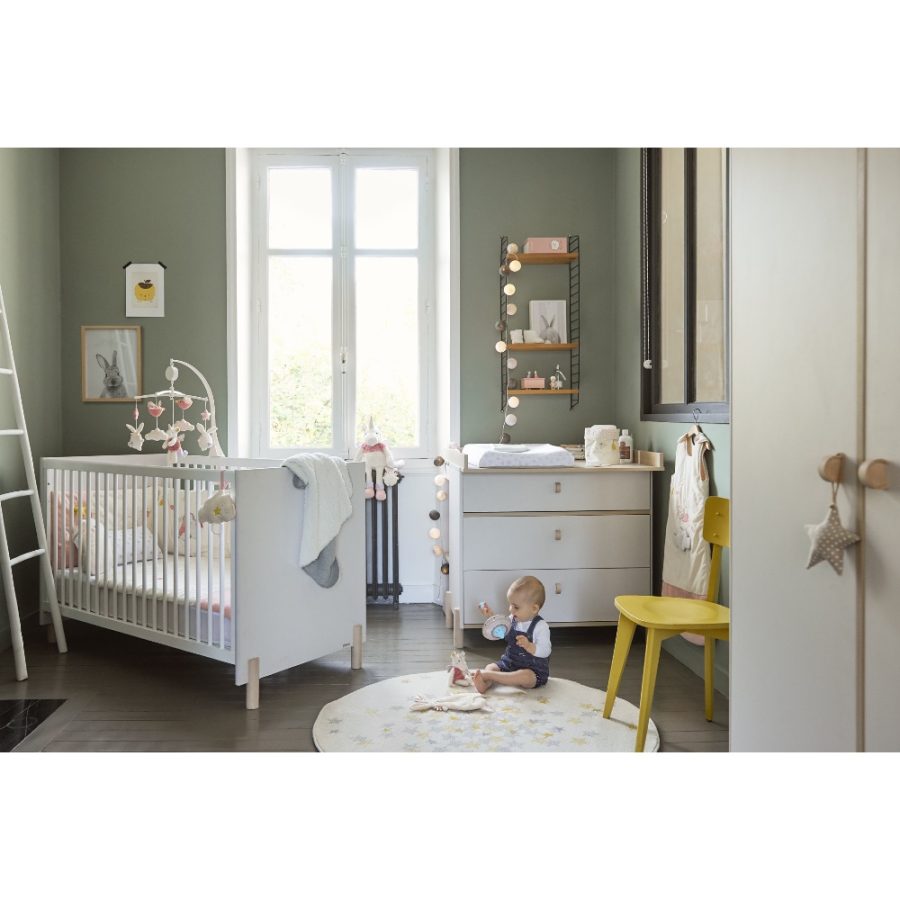 Cette commode est conçue pour accueillir un plan à langer afin d’optimiser la place dans la chambre. Le plan à langer est prévu pour des bébés pensant jusqu’à 15kg. Sa hauteur est optimale pour changer votre bébé sans se faire mal au dos.