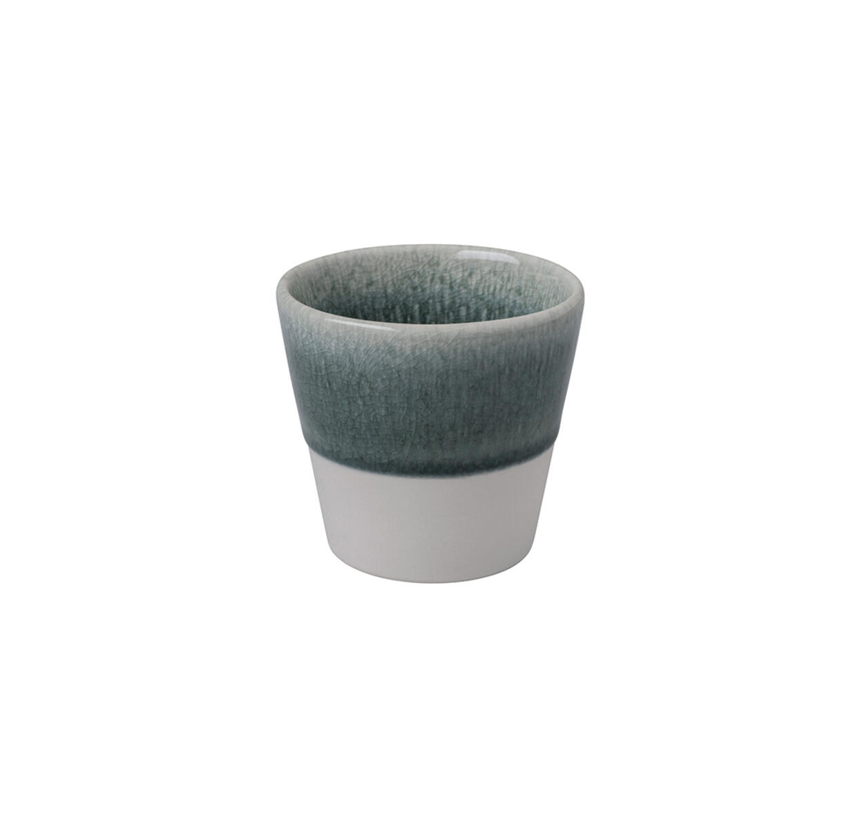 Sa forme cylindrique légèrement irrégulière, sa texture douce et son émail mat évoquent un toucher soyeux, presque textile. La teinte Cachemire offre un gris très clair, proche du sable ou de la cendre, qui s’intègre naturellement dans tous les styles de table.
