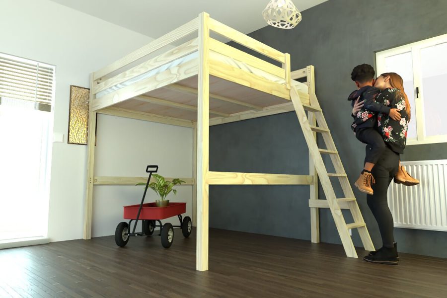 Lit mezzanine Sylvia avec échelle – Sobriété et efficacité dans un lit compact