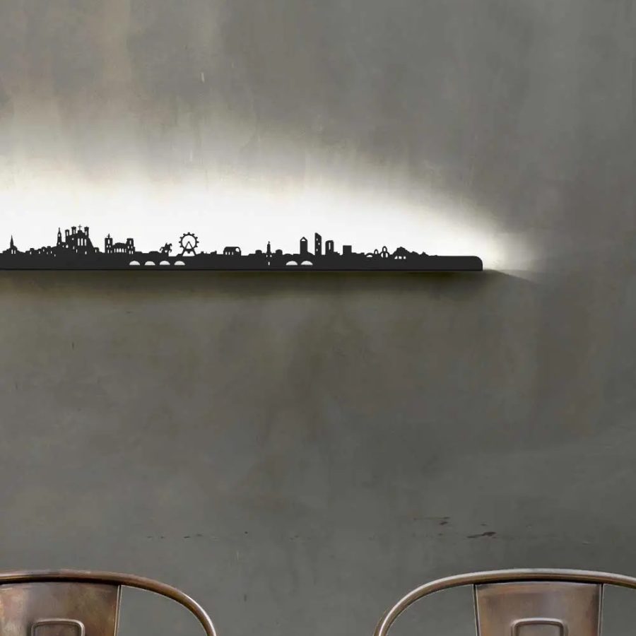 La silhouette de la skyline lyonnaise est une décoration murale réalisée par Je suis Art, entièrement Made in France. Elle transforme votre mur en un détail décoratif fort, apportant élégance et personnalité à votre intérieur chic. Réalisée en métal découpé, cette Skyline Lyon métal combine design, finesse et robustesse, pour un rendu durable et esthétique.