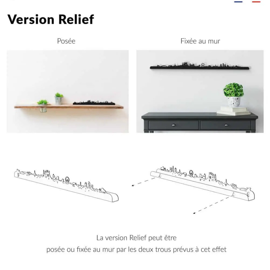 Déclinée en silhouette ou en relief, la Skyline de Lyon met en scène les plus beaux monuments et perspectives de la ville. Chaque pièce est conçue avec soin par Je suis Art, garantissant qualité artisanale et fidélité au dessin original. Cette décoration murale Lyon s’intègre facilement à tous les styles d’intérieur, créant un point focal unique et élégant.