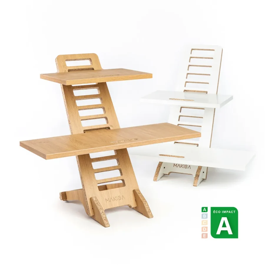 Deux finitions sont proposées : un mélaminé blanc mat et un effet chêne clair, pour s’harmoniser avec tout type de décoration intérieure, que ce soit dans un bureau professionnel, un espace de coworking ou à domicile. Une version « déclassée », présentant de légers défauts esthétiques, est également disponible à prix réduit, pour une option encore plus écologique et accessible.