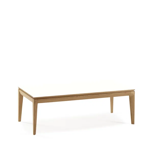 Le chêne massif teinte naturelle confère solidité et élégance. La finition naturelle met en valeur les veines du bois, apportant lumière et chaleur à votre intérieur. Le bois provient de forêts françaises gérées durablement, en accord avec l’engagement environnemental de Dasras, garantissant un mobilier durable et responsable.