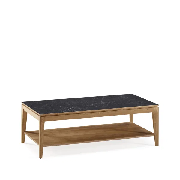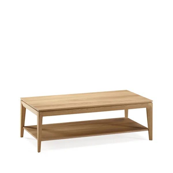 Table basse rectangulaire avec tablette 100×50 cm en chêne teinte naturelle – Buzz