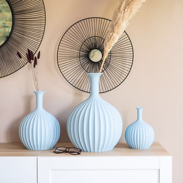 Le Vase design Azur de Filament capture l’essence des ciels clairs et des horizons marins. Entièrement fabriqué en France grâce à l’impression 3D, il allie modernité, précision et élégance. Ses lignes pures et son design épuré font écho à la sérénité et à la profondeur de la couleur bleue.