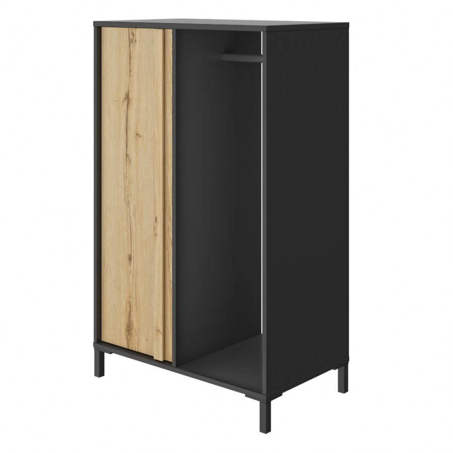 La tringle est noire pour une intégration parfaite dans le meuble.