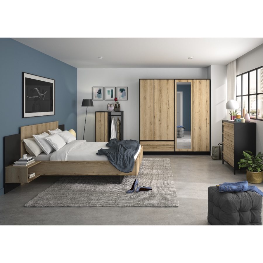 Cette combinaison de styles lui confère un grand sens de la modernité. La pièce principale de cette chambre, le lit, est conçue dans l’esprit de l’hôtel, avec une large tête de lit et des coussins en option. Il y a plusieurs rangements sur le lit, vous permettant d’aménager au mieux votre chambre en fonction de l’espace disponible. Une nouveauté, le vestiaire, vous permettra de bénéficier de rangements fermés, mais le plus important est une petite perche, qui vous permet d’y ranger vos vêtements pour le lendemain sans les froisser. Idéal pour les emporter avec vous au réveil !
